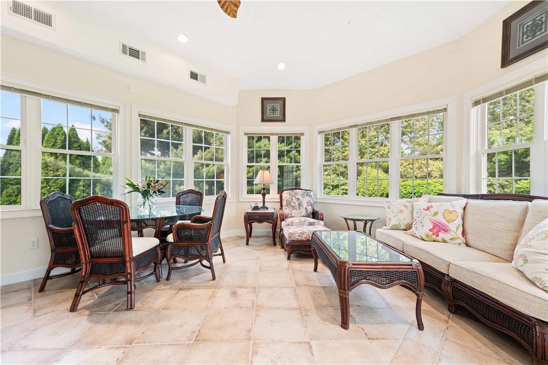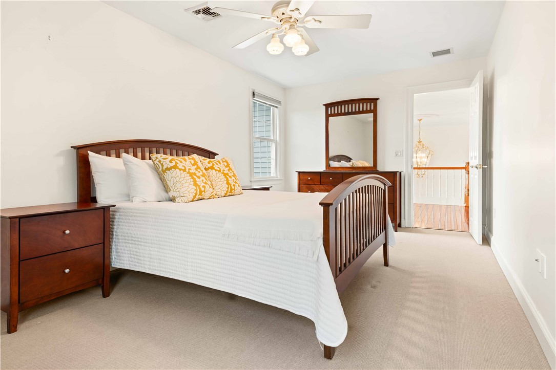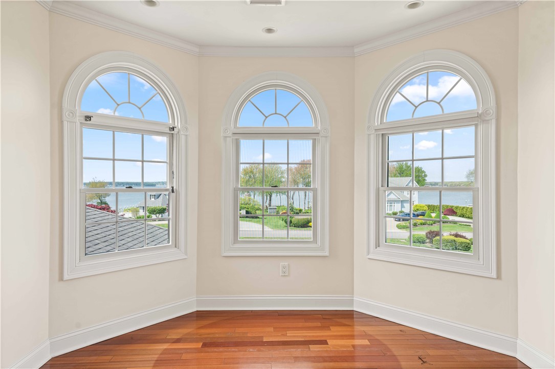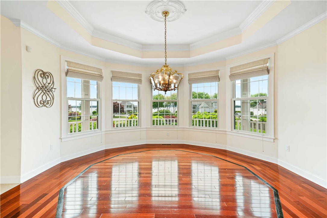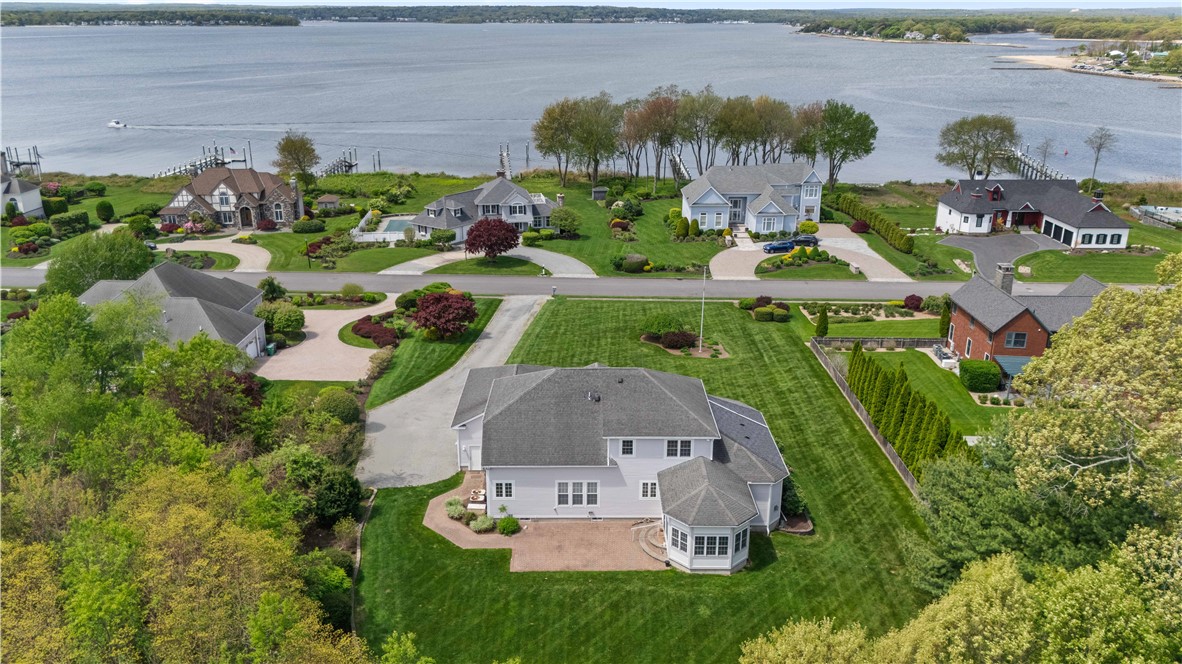 Overlooking the sparkling waters of Greenwich Bay, this beautifully positioned residence is located in the coveted Anglesea neighborhood, where year-round water views and breathtaking sunsets are part of everyday life. Designed with comfort and functionality in mind, the open-concept living space offers excellent flow for entertaining, featuring a gas fireplace and a generous kitchen with an expansive center island. A dedicated office at the front of the home provides a quiet workspace with French doors and captivating water views. The first-floor primary suite is a peaceful retreat, complete with a spacious walk-in closet and private bath. French doors open to a sunroom with soaring ceilings and overlooks a serene patio and beautifully landscaped backyard. Upstairs, a spacious loft-style living area captures stunning water views, along with two additional bedrooms and a full bath. The finished lower level offers versatile living space, including a recreation area with a bar and pool table. Oversized three-car garage, ample storage, and direct water access just steps away. Enjoy nearby Rocky Point Park and the historic Aldrich Mansion, along with local farms offering fresh eggs, blueberries, and flowers. Centrally located near marinas, golf, and recreational amenities, with quick access to T.F. Green International Airport, the MBTA train station, and major metropolitan areas including Providence, Boston, and New York. Available June 1st. Additional interior photos to follow.